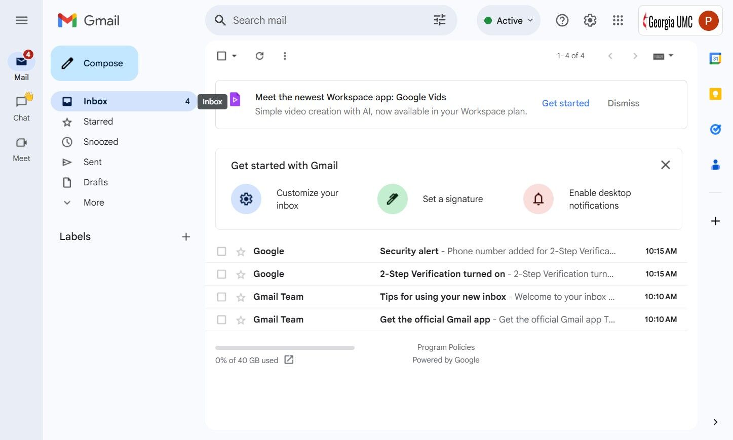 1. An invitation will appear in your personal email inbox when your georgiaumc.net email address is created for you. This invitation email will come from Google Workspace. Invitations are sent out when appointments are reported to the IT office.