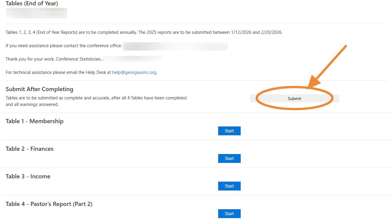 4. Once all 4 Tables are completed, warnings are answered, and you are READY to submit your reports, click this "Submit" button.