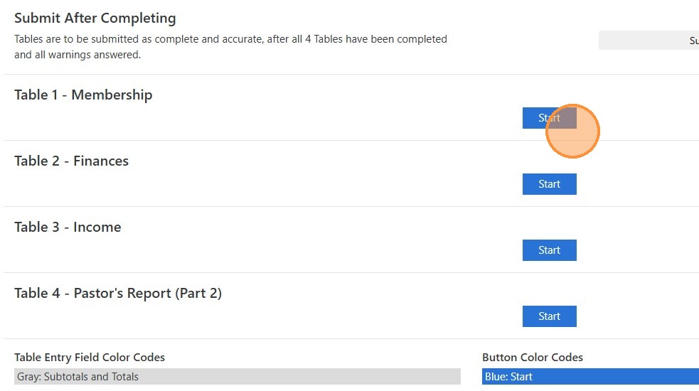 3. Click the "Start" button for the Table you want to begin working on, and you will do the same for each table. If warnings appear, please answer them as directed in Data Services.